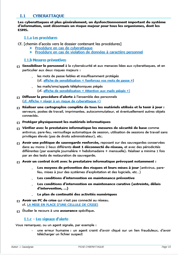 ⚠️ Attention aux documents récupérés sur internet : outre qu'ils sont généralement protégés par le droit d'auteur, ils ne sont pas forcément fiables, rarement à jour, et jamais adaptés à votre établissement !